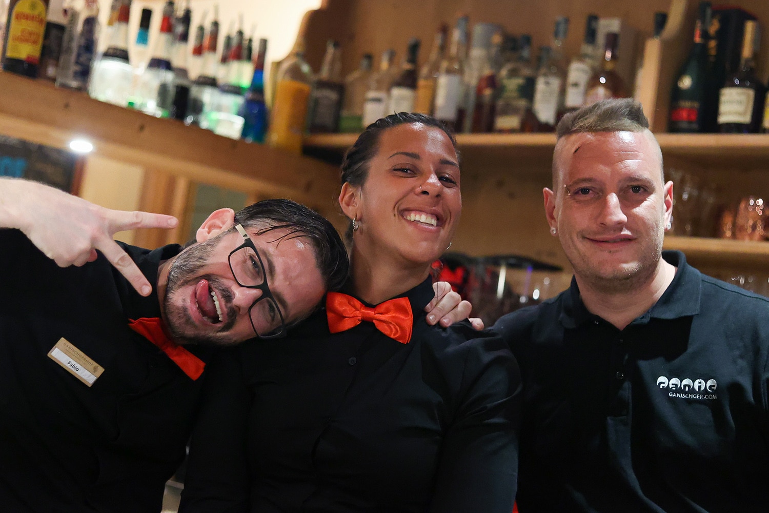 Georg zum Beispiel, der einmal pro Woche mit begeisterten Gästen zur Sonnenaufgangswanderung aufbricht. Hauptsächlich aber kümmert er sich um die Ganischgeralm, wo schon manches legendäre Fest gefeiert wurde und Georg – alias DJ Schicky – für volle Tanzflächen sorgte. Oder Markus, der zwar oft im Hintergrund die Strippen zieht, aber das ganze Hotel managed, regelmäßig bei Partys auf der Ganischgeralm hinterm Tresen steht, die allerneuesten Gin-Tonic-Trends kennt und diese mit viel Know-How und Liebe zubereitet. Und Klaus, der auf der Gardoné ein Tatar am Tisch zubereitet, von dem die Gäste noch lange schwärmen, und der nicht nur wegen seiner Expertise als Koch und Sommelier ein beliebter Gesprächspartner ist.